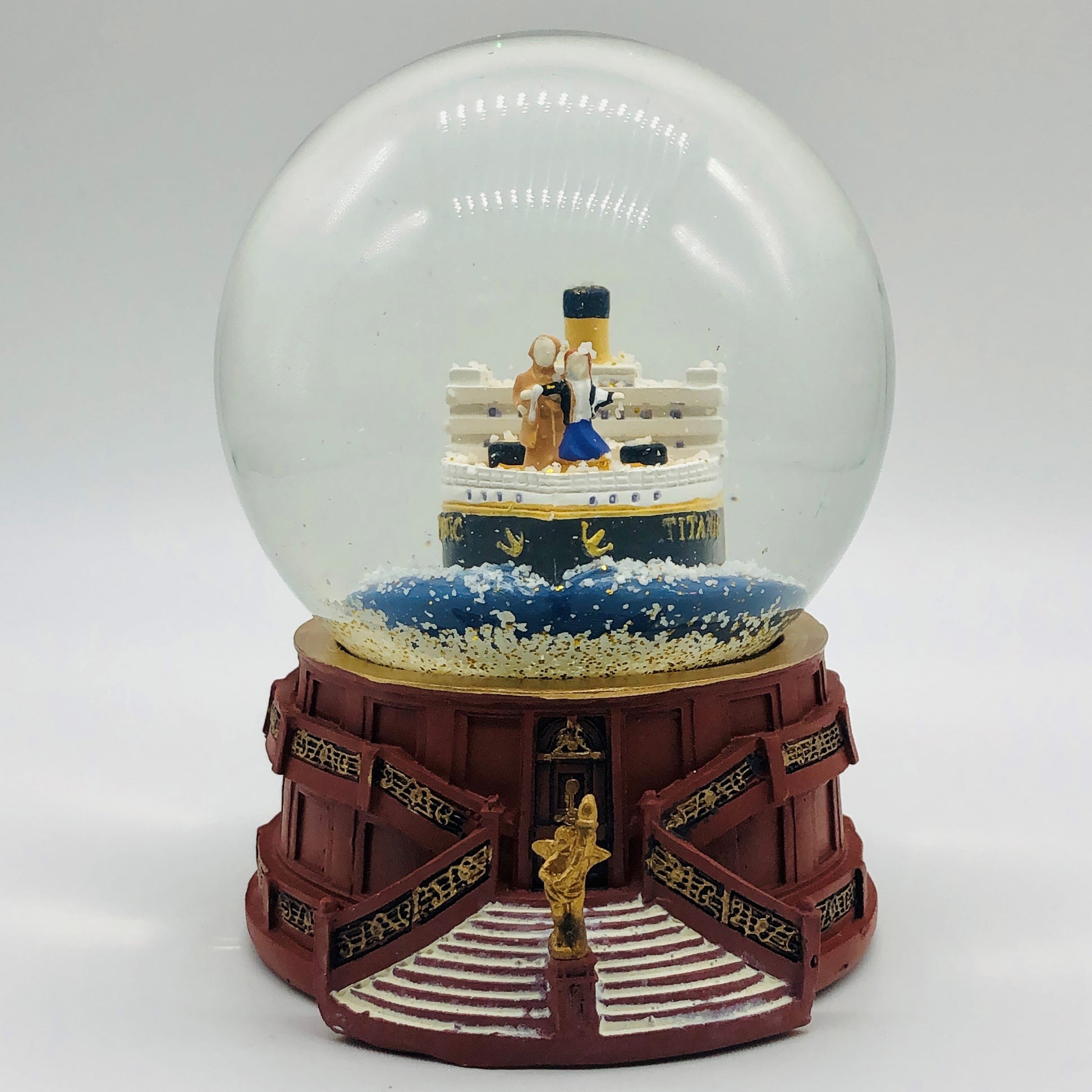 Add to your collection, and enjoy this 100mm Titanic Water Globe with the figures on the bow of the ship, mounted on the Grand Staircase base.